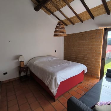 Bonita casa campestre amoblada o sin amoblar con 2 habitaciones, 3 baños, zona verde, entorno natural, a 4 minutos del pueblo.
